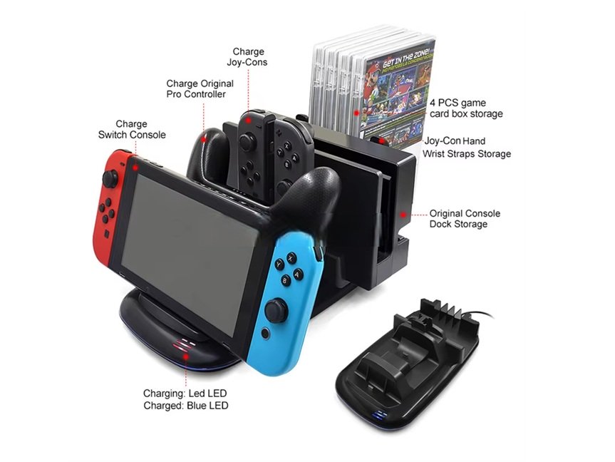 Posuňte svůj herní zážitek na vyšší úroveň a mějte své příslušenství vždy připravené k akci. Tato kompaktní nabíjecí stanice je nezbytným doplňkem pro každého majitele konzole Nintendo Switch nebo Nintendo Switch – OLED Model.