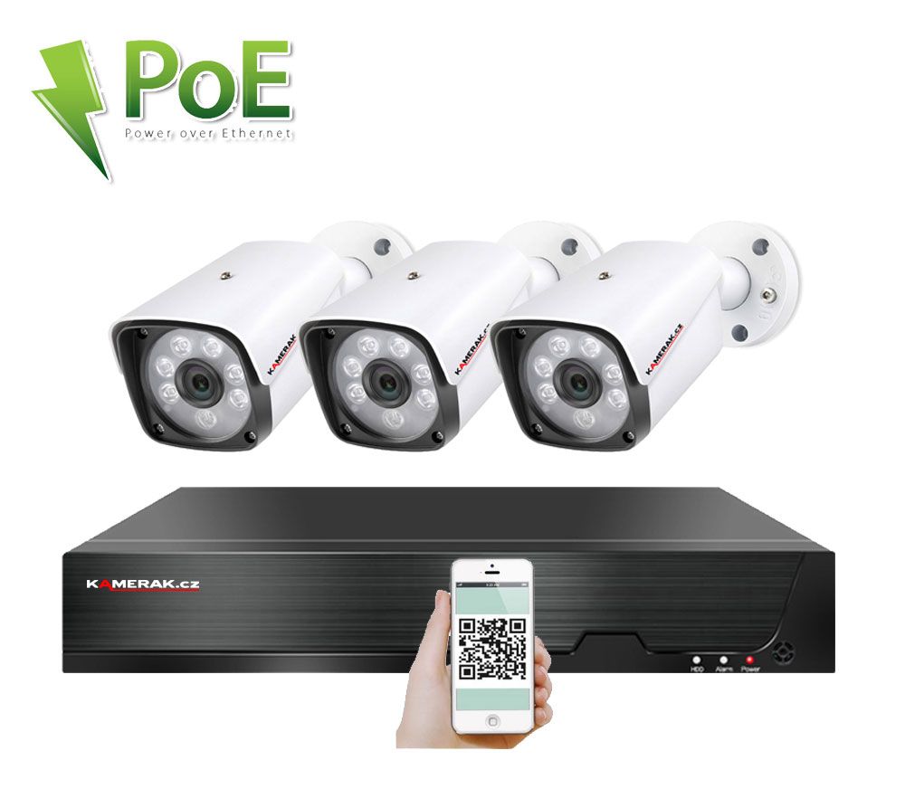 Digitální kamerový set PoE IP XM-301D 8MPx 4K značky KAMERAK.cz nabízí vizuální zabezpečení Vašeho domu, chaty, skladu obchodu a dalších prostor. Velmi jednoduchá instalace , kdy stačí pouze propojit samotné kamery s NVR pomocí UTP kabelu a následně podle českého návodu v rekordéru načíst IP adresy kamer. Napájení kamer se provádí, společně s daty, pomocí UTP kabelu přímo z NVR, tudíž není třeba řešit problematiku externího napájení. Díky jednoduchému a intuitivnímu zapojení zvládnete instalaci dohledového systému svépomocí. Součástí kamerového setu jsou všechny potřebné komponenty pro zprovoznění (pro záznam je nutný pouze HDD, který není součástí balení). Při nákupu HDD společně s kamerovým setem Vám jej zdarma odborně nainstalujeme. Lze připojit záznamové zařízení pomocí síťového kabelu do Vašeho routeru a tím získáte vzdálený přístup a sledování obrazu kamer na Vašem telefonu (Android, iOS), tabletu nebo PC. Menu NVR je v českém jazyce a součástí balení je i český návod, díky tomu je ovládání kamerového systému velmi jednoduché.