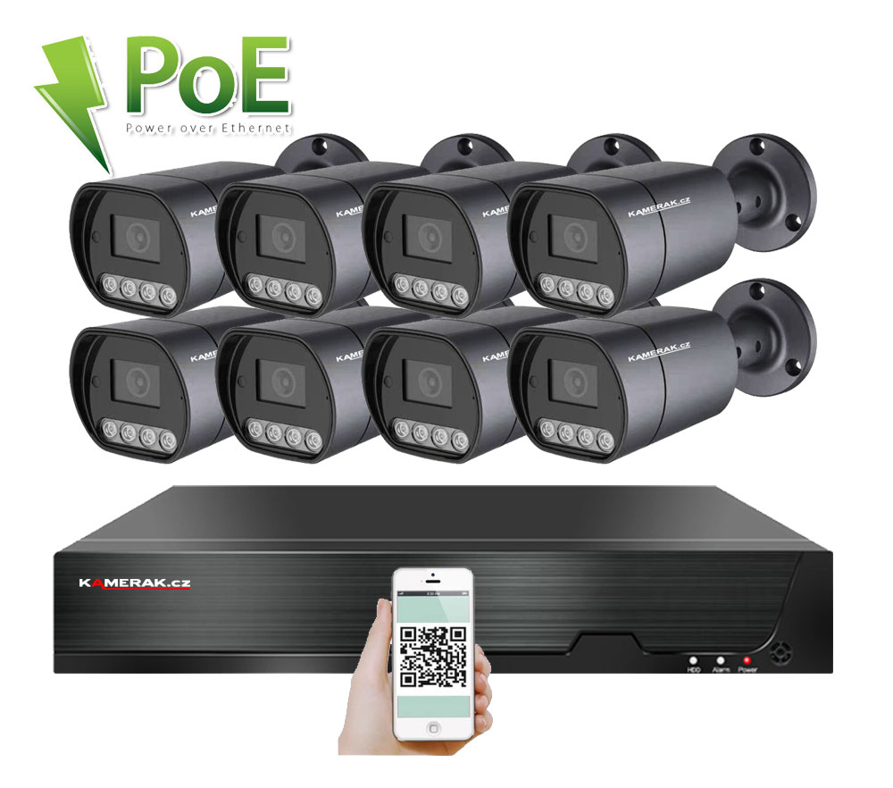 Digitální kamerový set PoE IP XM-810D 8MPx značky KAMERAK.cz nabízí vizuální zabezpečení Vašeho domu, chaty, skladu obchodu a dalších prostor. Velmi jednoduchá instalace , kdy stačí pouze propojit samotné kamery s NVR pomocí UTP kabelu a následně podle českého návodu v rekordéru načíst IP adresy kamer. Napájení kamer se provádí, společně s daty, pomocí UTP kabelu přímo z NVR, tudíž není třeba řešit problematiku externího napájení. Díky jednoduchému a intuitivnímu zapojení zvládnete instalaci dohledového systému svépomocí. Součástí kamerového setu jsou všechny potřebné komponenty pro zprovoznění (pro záznam je nutný pouze HDD, který není součástí balení). Při nákupu HDD společně s kamerovým setem Vám jej zdarma odborně nainstalujeme. Lze připojit záznamové zařízení pomocí síťového kabelu do Vašeho routeru a tím získáte vzdálený přístup a sledování obrazu kamer na Vašem telefonu (Android, iOS), tabletu nebo PC. Menu NVR je v českém jazyce a součástí balení je i český návod, díky tomu je ovládání kamerového systému velmi jednoduché.