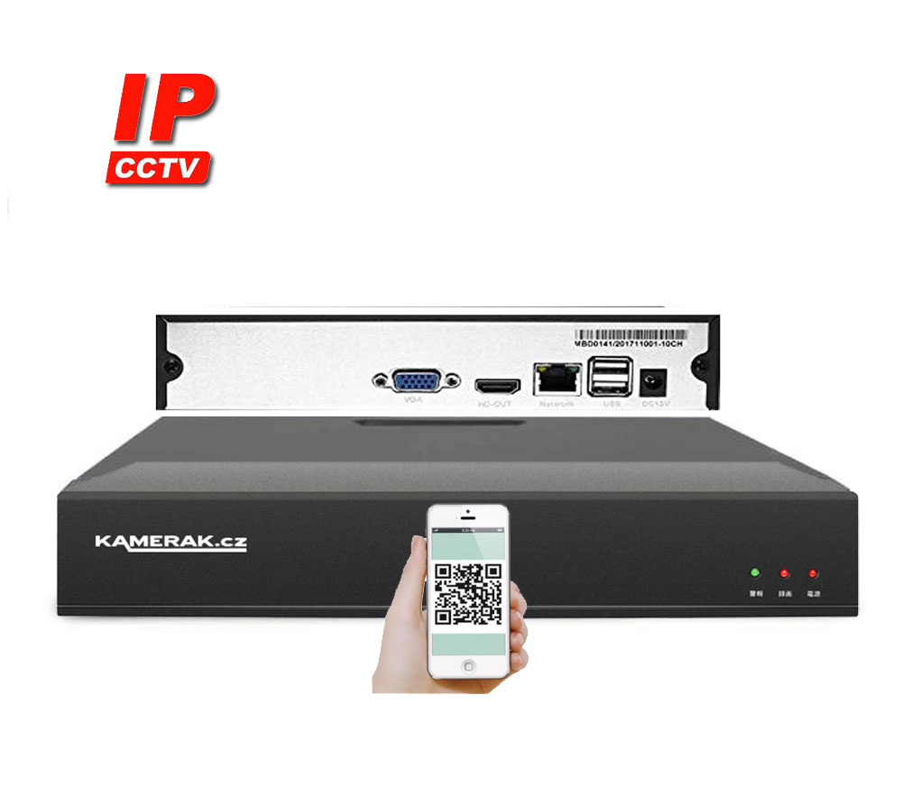 IP kamerový set s externím PoE pro jednoduché sestavení svépomocí. NVR v sobě nemá instalováno napájení kamer, které je řešeno pomocí switch. Lze tedy umístit switch (napájení IP kamer) na jiné místo ne rekordér, který se následně připojuje k obrazovce/internetu.
