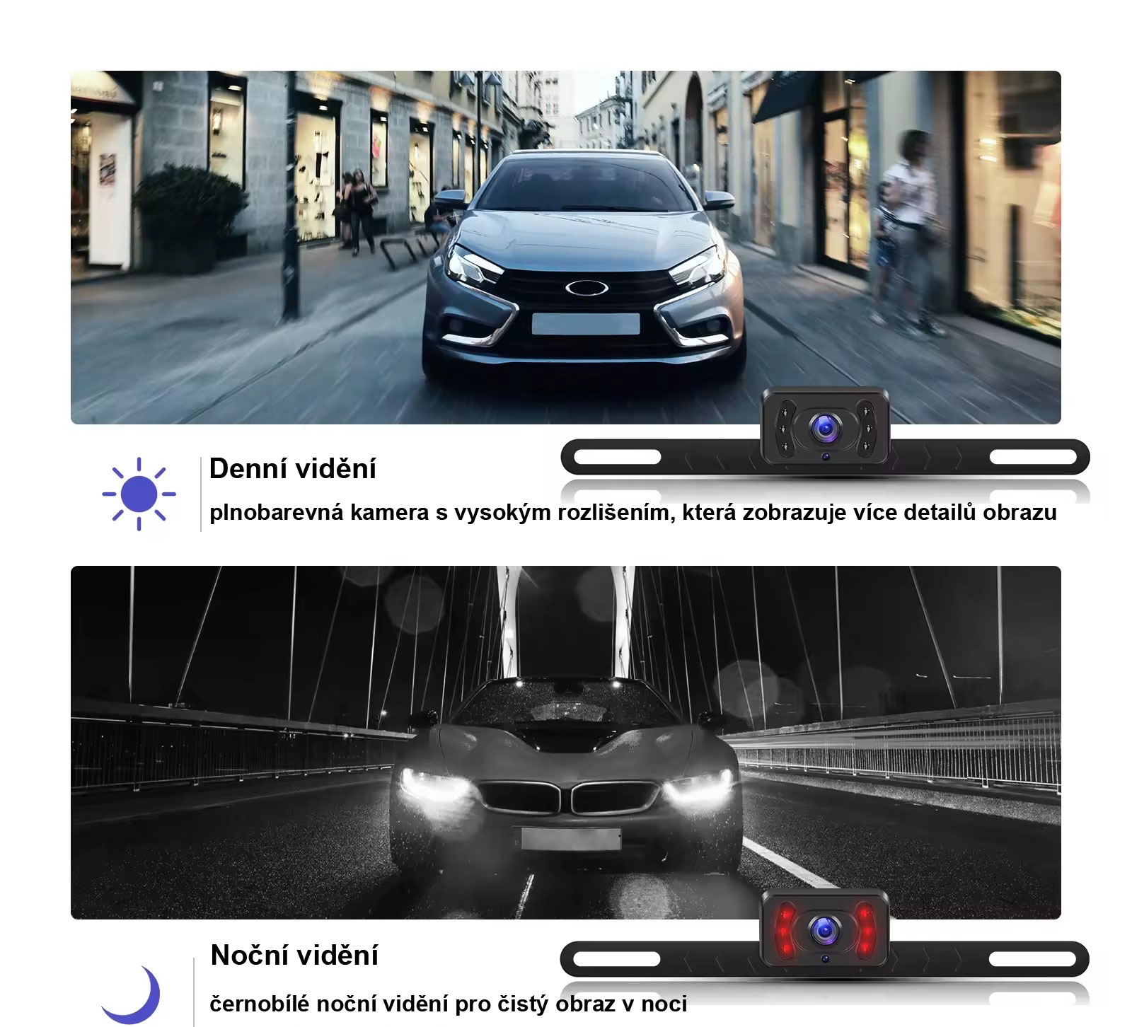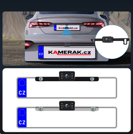 7. Dokonale pasuje na rám SPZ, takže instalace kamery je snadná. Neovlivní použití originálního rámu SPZ.