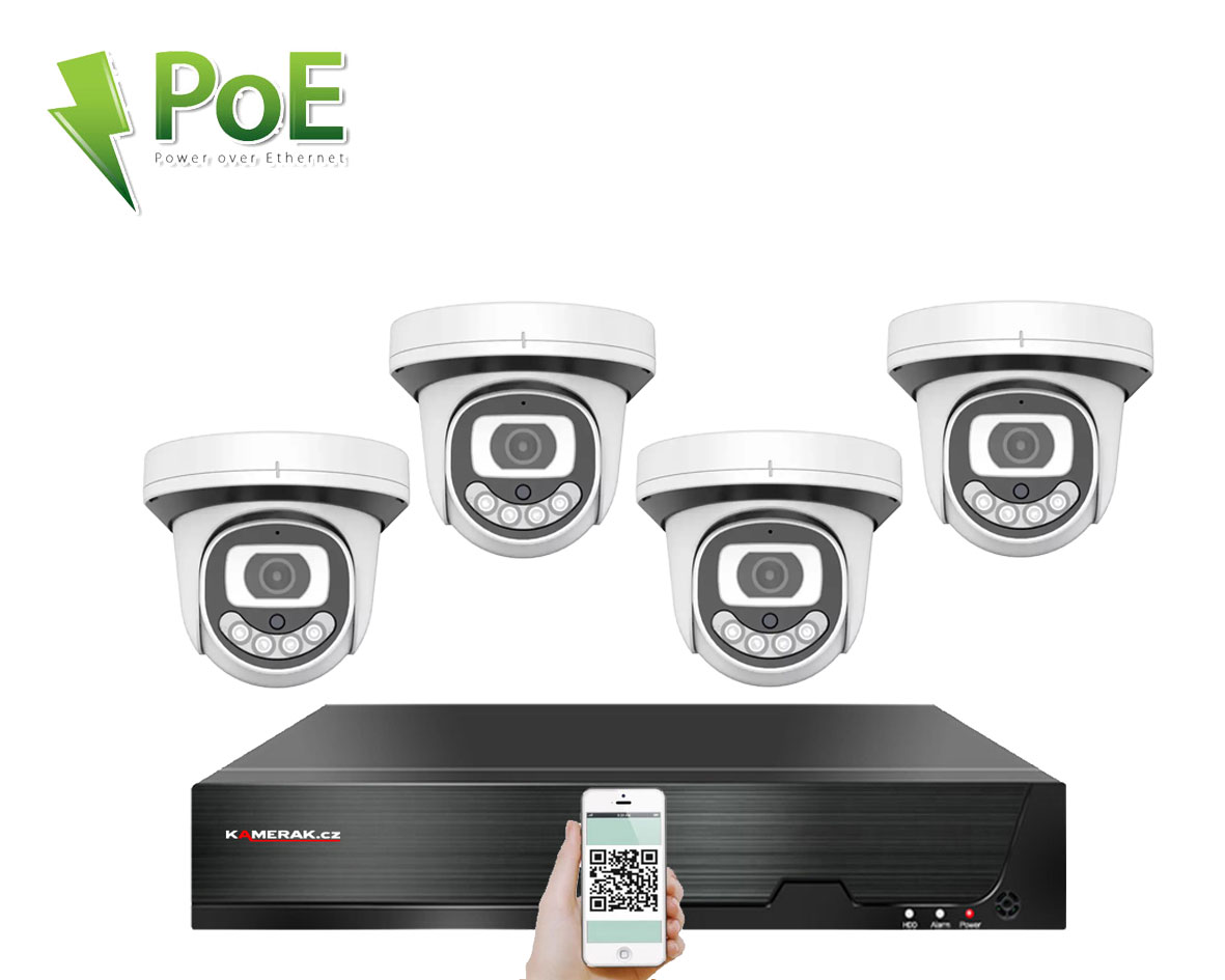 Digitální kamerový set 4K PoE IP XM-412D 8MPx značky KAMERAK.cz nabízí vizuální zabezpečení Vašeho domu, chaty, skladu obchodu a dalších prostor. Velmi jednoduchá instalace , kdy stačí pouze propojit samotné kamery s NVR pomocí UTP kabelu a následně podle českého návodu v rekordéru načíst IP adresy kamer. Napájení kamer se provádí, společně s daty, pomocí UTP kabelu přímo z NVR, tudíž není třeba řešit problematiku externího napájení. Díky jednoduchému a intuitivnímu zapojení zvládnete instalaci dohledového systému svépomocí. Součástí kamerového setu jsou všechny potřebné komponenty pro zprovoznění (pro záznam je nutný pouze HDD, který není součástí balení). Při nákupu HDD společně s kamerovým setem Vám jej zdarma odborně nainstalujeme. Lze připojit záznamové zařízení pomocí síťového kabelu do Vašeho routeru a tím získáte vzdálený přístup a sledování obrazu kamer na Vašem telefonu (Android, iOS), tabletu nebo PC. Menu NVR je v českém jazyce a součástí balení je i český návod, díky tomu je ovládání kamerového systému velmi jednoduché.