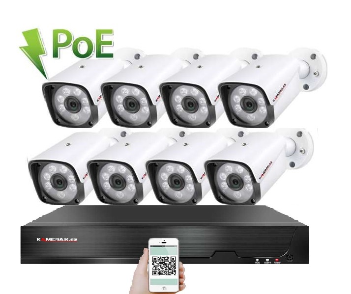 Digitální kamerový set PoE IP XM-801B 4MPx značky KAMERAK.cz nabízí vizuální zabezpečení Vašeho domu, chaty, skladu obchodu a dalších prostor. Velmi jednoduchá instalace , kdy stačí pouze propojit samotné kamery s NVR pomocí UTP kabelu a následně podle českého návodu v rekordéru načíst IP adresy kamer. Napájení kamer se provádí, společně s daty, pomocí UTP kabelu přímo z NVR, tudíž není třeba řešit problematiku externího napájení. Díky jednoduchému a intuitivnímu zapojení zvládnete instalaci dohledového systému svépomocí. Součástí kamerového setu jsou všechny potřebné komponenty pro zprovoznění (pro záznam je nutný pouze HDD, který není součástí balení). Při nákupu HDD společně s kamerovým setem Vám jej zdarma odborně nainstalujeme. Lze připojit záznamové zařízení pomocí síťového kabelu do Vašeho routeru a tím získáte vzdálený přístup a sledování obrazu kamer na Vašem telefonu (Android, iOS), tabletu nebo PC. Menu NVR je v českém jazyce a součástí balení je i český návod, díky tomu je ovládání kamerového systému velmi jednoduché.