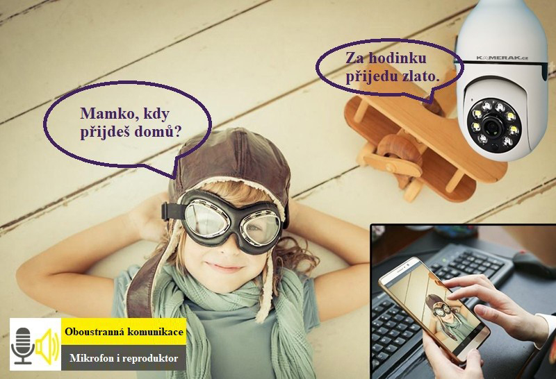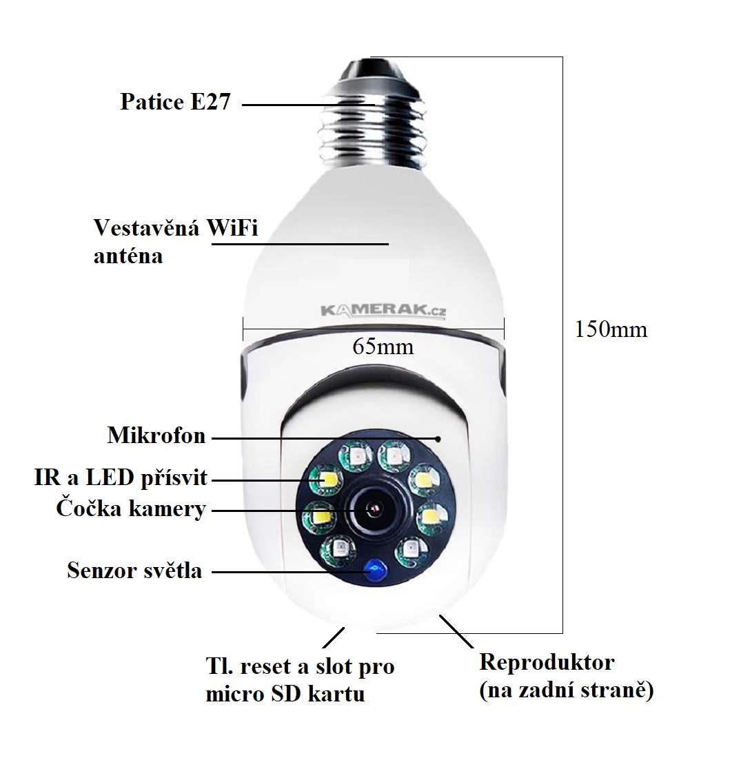 Napájecí port: E27 z objímky běžného lustru, nebo objímkového adaptéru, který je součástí kamery