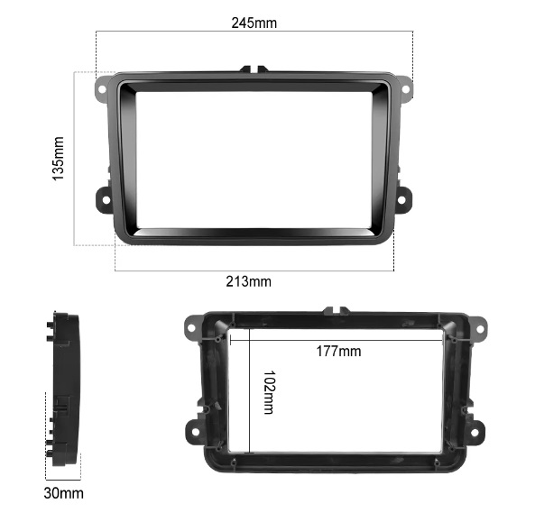 Plastový redukční rámeček je vhodnou variantou pro všechny, kteří se rozhodli vylepšit si svůj automobil novým 2DIN rádiem. Rámeček je dokonale přizpůsoben pro redukci otvoru z velikostní třídy VW na 2DIN velikost.