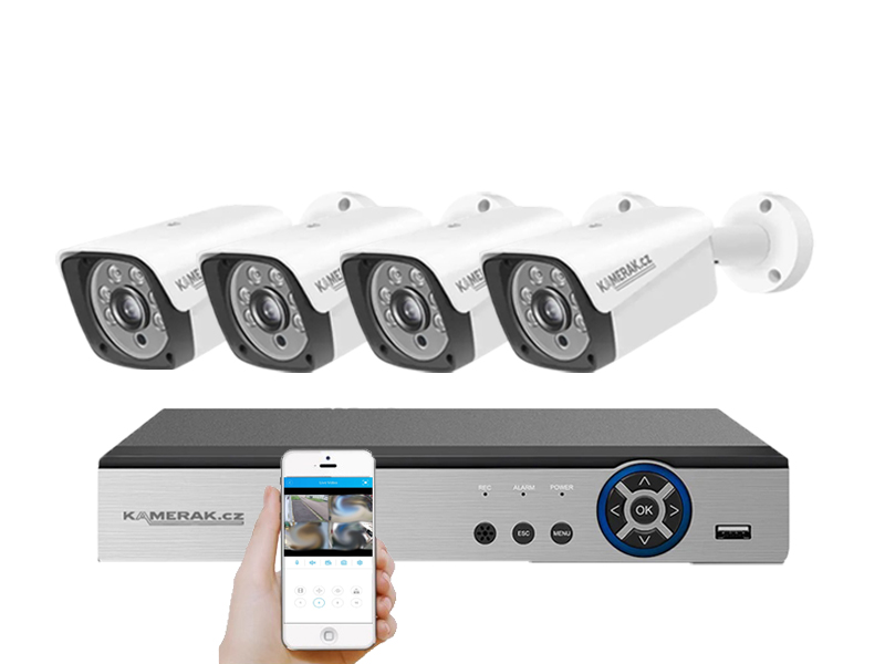 Kamerový set AHD HE4-55E 5Mpx značky KAMERAK.cz nabízí vizuální zabezpečení Vašeho domu, chaty, skladu obchodu a dalších prostor. Tento dohledový systém disponuje velmi jednoduchou instalací a tím jej zvládnete nainstalovat svépomocí. V balení je vše potřebné pro zprovoznění (pro záznam je nutný pouze HDD, který není součástí balení). Při nákupu HDD s kamerovým setem Vám HDD zdarma odborně namontujeme. Rekordér lze propojit pomocí síťového kabelu k Vašem routeru a tím dosáhnout možnosti vzdáleného sledování na Vašem telefonu (Android, iOS), tabletu nebo PC. Záznamové zařízení je v českém jazyce a součástí balení je i český návod, díky tomu je ovládání kamerového systému velmi jednoduché.