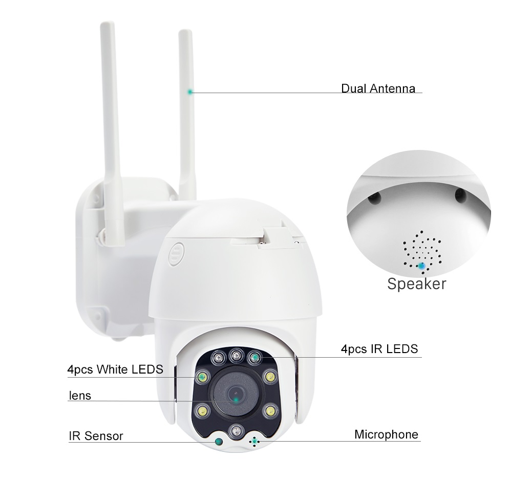 Výkonná bezdrátová Wi-Fi IP kamera typu DOME s otočným motorizovaným objektivem ve venkovním provedení s krytím IP66, silným nočním infračerveným viděním, je vhodná pro firemní i domácí použití, pokud požadujete velice detailní a ostrý obraz s možností otáčení objektivu.