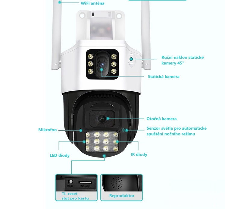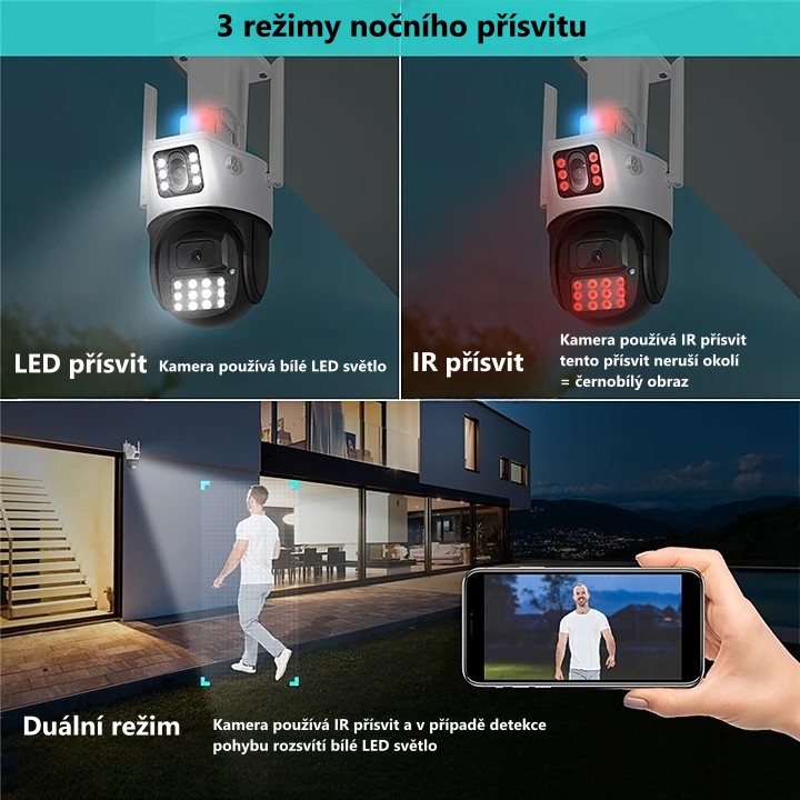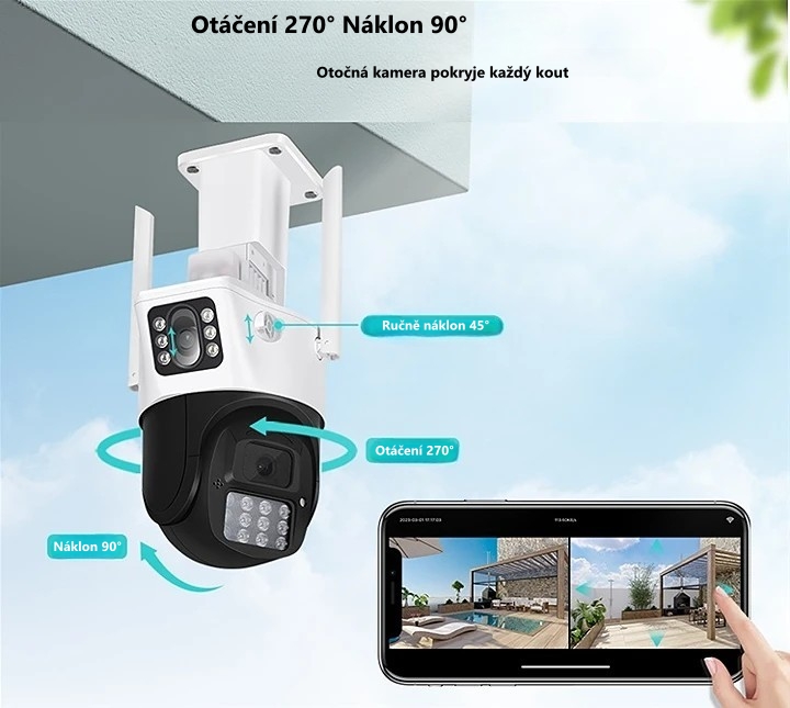 Vylepšená otočná IP kamera XM-630 kombinuje dva nezávislé snímače pro komplexní dohled a detailní záznam. Díky P2P cloudovému připojení ji jednoduše nastavíte a ovládáte z mobilní aplikace, aniž byste museli řešit konfiguraci sítě. Instalaci i zprovoznění kamery zvládne laik bez zkušeností.