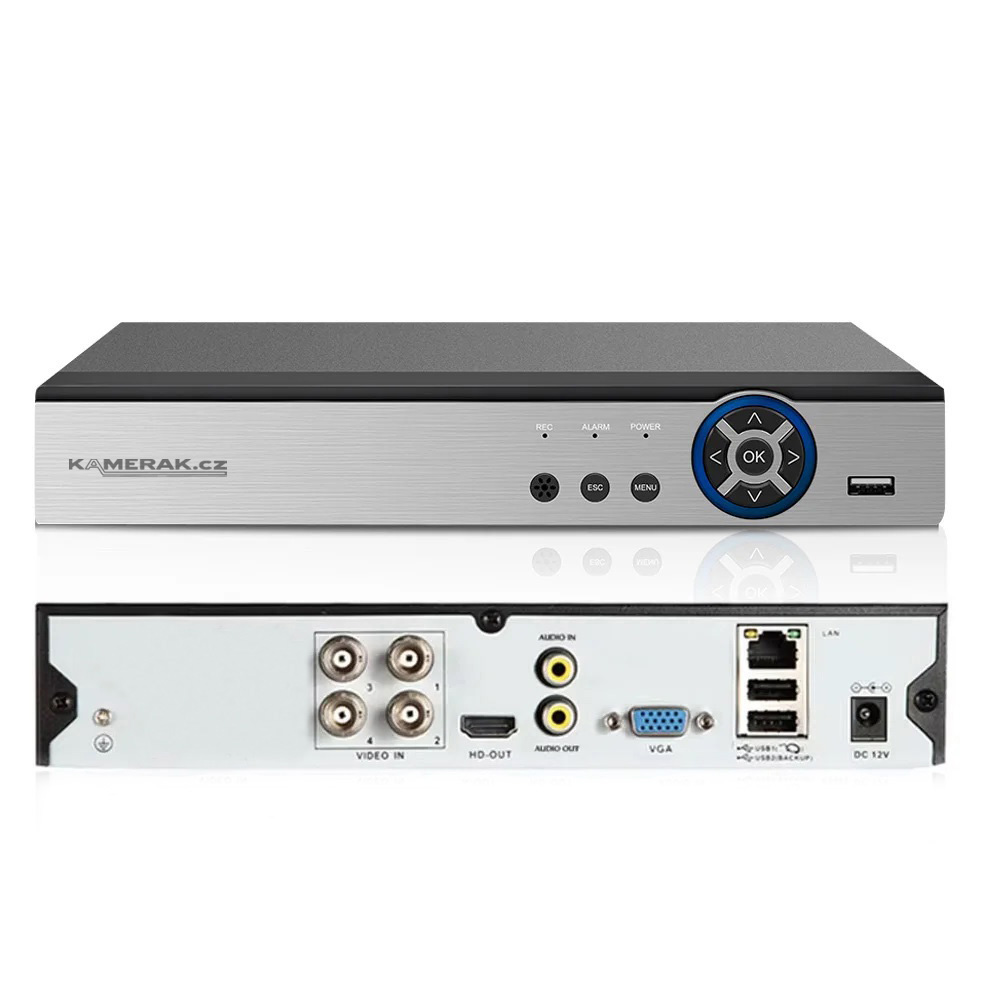 Hybridní AHD rekordér umožňující připojení jak běžných analogových kamer, tak analogových AHD kamer 720P/960P/1080P/5MPx, nebo IP kamer 1080p. K dispozici jsou 4 analogové vstupy BNC, kam lze připojit AHD kamery s rozlišením až 5MPx, ale také běžné analogové kamery. Rekordér lze přepnout do režimu s IP kamerami, pak lze připojit až 4 HD IP kamery. Rekordér lze osadit pevným SATA diskem o kapacitě až 12TB.