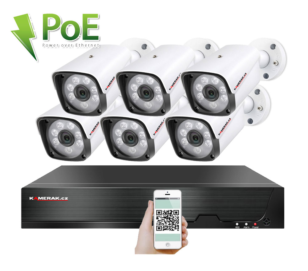 Digitální kamerový set PoE IP XM-601D 8MPx 4K značky KAMERAK.cz nabízí vizuální zabezpečení Vašeho domu, chaty, skladu obchodu a dalších prostor. Velmi jednoduchá instalace , kdy stačí pouze propojit samotné kamery s NVR pomocí UTP kabelu a následně podle českého návodu v rekordéru načíst IP adresy kamer. Napájení kamer se provádí, společně s daty, pomocí UTP kabelu přímo z NVR, tudíž není třeba řešit problematiku externího napájení. Díky jednoduchému a intuitivnímu zapojení zvládnete instalaci dohledového systému svépomocí. Součástí kamerového setu jsou všechny potřebné komponenty pro zprovoznění (pro záznam je nutný pouze HDD, který není součástí balení). Při nákupu HDD společně s kamerovým setem Vám jej zdarma odborně nainstalujeme. Lze připojit záznamové zařízení pomocí síťového kabelu do Vašeho routeru a tím získáte vzdálený přístup a sledování obrazu kamer na Vašem telefonu (Android, iOS), tabletu nebo PC. Menu NVR je v českém jazyce a součástí balení je i český návod, díky tomu je ovládání kamerového systému velmi jednoduché.