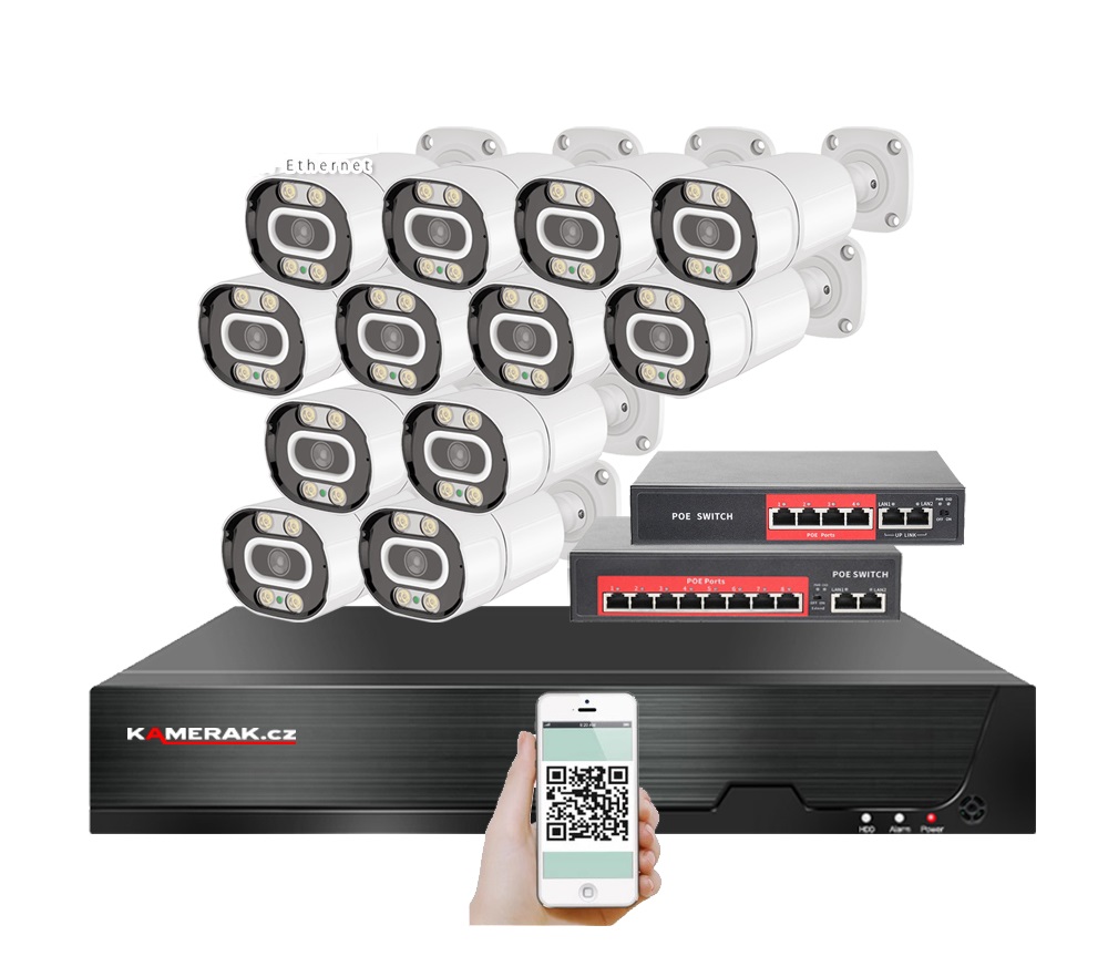 Digitální kamerový set IP XM-12032B-Ext. 4MPx s externím PoE napájením značky KAMERAK.cz nabízí vizuální zabezpečení Vašeho domu, chaty, skladu obchodu a dalších prostor. Velmi jednoduchá instalace , kdy stačí pouze propojit samotné kamery s PoE switch a následně switch s NVR pomocí UTP kabelu a poté podle českého návodu v rekordéru načíst IP adresy kamer. Napájení kamer se provádí z PoE switche, společně s daty, pomocí UTP kabelu. Díky jednoduchému a intuitivnímu zapojení zvládnete instalaci dohledového systému svépomocí. Součástí kamerového setu jsou všechny potřebné komponenty pro zprovoznění (pro záznam je nutný pouze HDD, který není součástí balení). Při nákupu HDD společně s kamerovým setem Vám jej zdarma odborně nainstalujeme. Lze připojit záznamové zařízení pomocí síťového kabelu do Vašeho routeru a tím získáte vzdálený přístup a sledování obrazu kamer na Vašem telefonu (Android, iOS), tabletu nebo PC. Menu NVR je v českém jazyce a součástí balení je i český návod, díky tomu je ovládání kamerového systému velmi jednoduché.