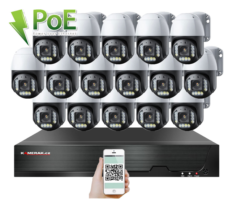 Digitální kamerový set PoE XM-PTZ-1621D 8Mpx značky KAMERAK.cz nabízí vizuální zabezpečení Vašeho domu, chaty, skladu obchodu a dalších prostor. Velmi jednoduchá instalace , kdy stačí pouze propojit samotné kamery s NVR pomocí UTP kabelu a následně podle českého návodu v rekordéru načíst IP adresy kamer. Napájení kamer se provádí, společně s daty, pomocí UTP kabelu přímo z NVR, tudíž není třeba řešit problematiku externího napájení. Díky jednoduchému a intuitivnímu zapojení zvládnete instalaci dohledového systému svépomocí. Součástí kamerového setu jsou všechny potřebné komponenty pro zprovoznění (pro záznam je nutný pouze HDD, který není součástí balení). Při nákupu HDD společně s kamerovým setem Vám jej zdarma odborně nainstalujeme. Lze připojit záznamové zařízení pomocí síťového kabelu do Vašeho routeru a tím získáte vzdálený přístup a sledování obrazu kamer na Vašem telefonu (Android, iOS), tabletu nebo PC. Menu NVR je v českém jazyce a součástí balení je i český návod, díky tomu je ovládání kamerového systému velmi jednoduché.