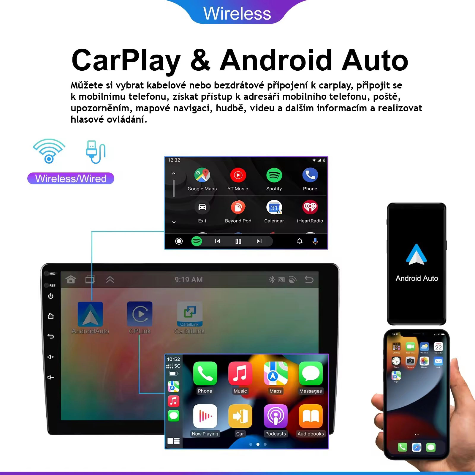 2DIN Autoradio A3453 s 9" LCD, Android 13 CarPlay, Android Auto, 4GB RAM, 64GB ROM, WiFi, GPS, Bluetooth, RDS - Cena: 4472 Kč