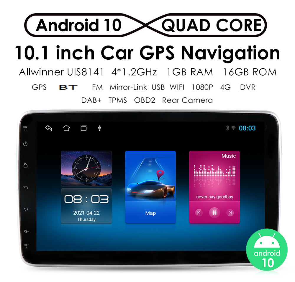 1,  10'' HD 1080P Inteligentní navigace s velkou obrazovkou, kapacitní  dotyková obrazovka, okamžitá odezva, nezasekává se