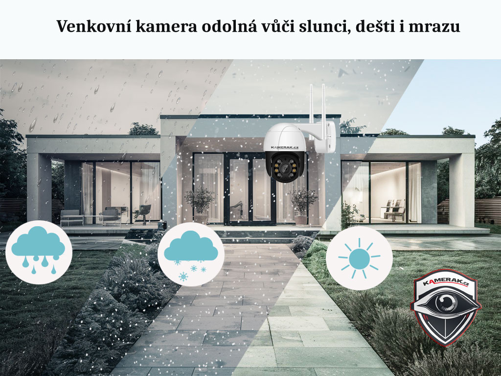 Výkonná bezdrátová Wi-Fi IP kamera typu DOME s otočným motorizovaným objektivem ve venkovním provedení s krytím IP66, silným nočním infračerveným viděním a zároveň silným LED světlem, je vhodná pro firemní i domácí použití, pokud požadujete velice detailní a ostrý obraz s možností otáčení objektivu. Nabízí vysoké rozlišení FullHD 1080P (1920 x 1080 pixelů), moderní kompresi videa kodekem H.265, konektivitu do bezdrátové sítě WLAN pomocí Wi-Fi a do sítě LAN pomocí konektoru RJ-45, nízkou spotřebu a vysokou spolehlivost i za nepříznivých podmínek. Tato kamera má integrovaný slot na standardní paměťové karty MicroSD (max 128GB) a podporuje autonomní nahrávání ve smyčce, bez nutnosti dalších záznamových zařízení. Kameru lze vzdáleně ovládat a otáčet objektivem. Podporuje protokol ONVIF pro snadné připojení k záznamovému zařízení (NVR). Spolupracuje s aplikací pro chytré telefony a tablety s Android OS a iOS pro vzdálené sledování.