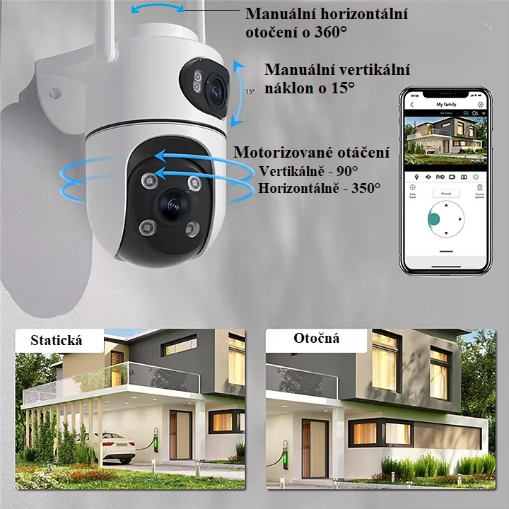 Vylepšená otočná IP kamera XM-620 kombinuje dva nezávislé snímače pro komplexní dohled a detailní záznam. Díky P2P cloudovému připojení ji jednoduše nastavíte a ovládáte z mobilní aplikace, aniž byste museli řešit konfiguraci sítě.
