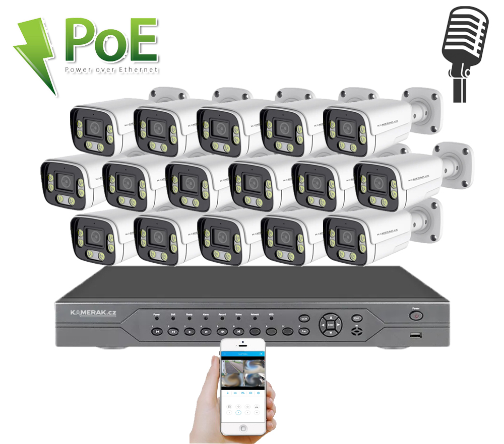 Digitální kamerový set PoE IP XM-1606D 8MPx značky KAMERAK.cz nabízí vizuální zabezpečení Vašeho domu, chaty, skladu obchodu a dalších prostor. Velmi jednoduchá instalace , kdy stačí pouze propojit samotné kamery s NVR pomocí UTP kabelu a následně podle českého návodu v rekordéru načíst IP adresy kamer. Napájení kamer se provádí, společně s daty, pomocí UTP kabelu přímo z NVR, tudíž není třeba řešit problematiku externího napájení. Díky jednoduchému a intuitivnímu zapojení zvládnete instalaci dohledového systému svépomocí. Součástí kamerového setu jsou všechny potřebné komponenty pro zprovoznění (pro záznam je nutný pouze HDD, který není součástí balení). Při nákupu HDD společně s kamerovým setem Vám jej zdarma odborně nainstalujeme. Lze připojit záznamové zařízení pomocí síťového kabelu do Vašeho routeru a tím získáte vzdálený přístup a sledování obrazu kamer na Vašem telefonu (Android, iOS), tabletu nebo PC. Menu NVR je v českém jazyce a součástí balení je i český návod, díky tomu je ovládání kamerového systému velmi jednoduché.