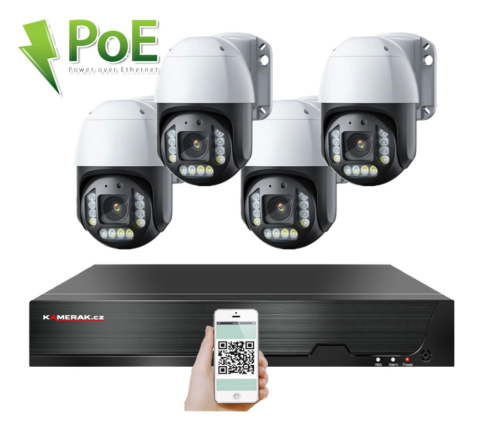 Digitální kamerový set PoE XM-PTZ-420D 8Mpx značky KAMERAK.cz nabízí vizuální zabezpečení Vašeho domu, chaty, skladu obchodu a dalších prostor. Velmi jednoduchá instalace , kdy stačí pouze propojit samotné kamery s NVR pomocí UTP kabelu a následně podle českého návodu v rekordéru načíst IP adresy kamer. Napájení kamer se provádí, společně s daty, pomocí UTP kabelu přímo z NVR, tudíž není třeba řešit problematiku externího napájení. Díky jednoduchému a intuitivnímu zapojení zvládnete instalaci dohledového systému svépomocí. Součástí kamerového setu jsou všechny potřebné komponenty pro zprovoznění (pro záznam je nutný pouze HDD, který není součástí balení). Při nákupu HDD společně s kamerovým setem Vám jej zdarma odborně nainstalujeme. Lze připojit záznamové zařízení pomocí síťového kabelu do Vašeho routeru a tím získáte vzdálený přístup a sledování obrazu kamer na Vašem telefonu (Android, iOS), tabletu nebo PC. Menu NVR je v českém jazyce a součástí balení je i český návod, díky tomu je ovládání kamerového systému velmi jednoduché.