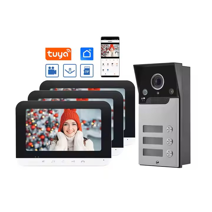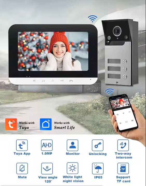 Aplikace mobilním telefonu: Pomocí aplikace Tuya Smart/ Smart Life lze pomocí mobilního telefonu získávat informaci o tom, že někdo zvoní a komunikovat s osobou pomocí vašeho mobilního telefonu, kouknout se na prostor snímaný kamerou ve venkovní jednotce (zvonku) či vzdáleně otevřít el. zámek.
