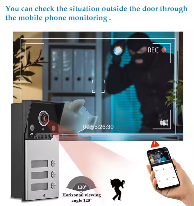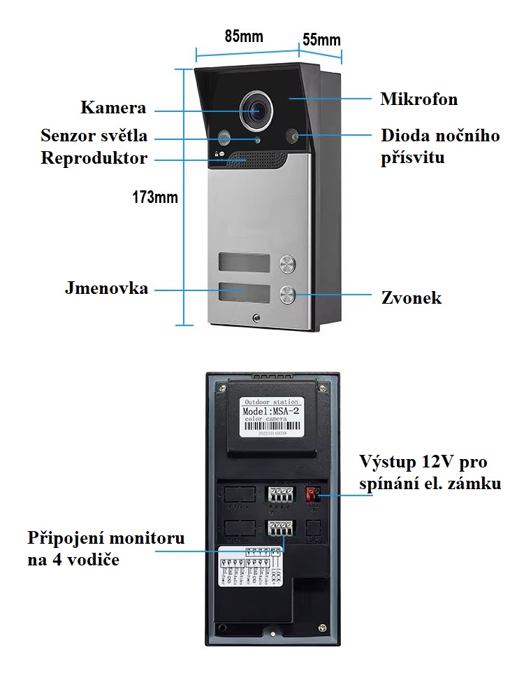 Snadná instalace: Video zvonek kabelově propojíte s monitorem (do 28m=4-0,2mm², do 50m=4*0,3mm², do 80m=4*0,4mm²) a systém je funkční. Pro možnost sledovat dění v mobilním telefonu stačí spárovat s aplikací Tuya Smart/Smart Life, které si stáhnete ZDARMA do mobilního telefonu, tabletu.