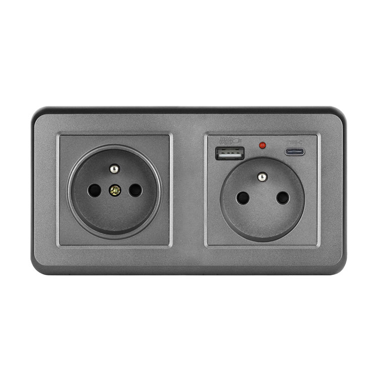 UNIC Elektrická zásuvka 2x230V+USB+USB C 5V/2,1A plast šedá v rámečku 153mm - Cena: 307 Kč