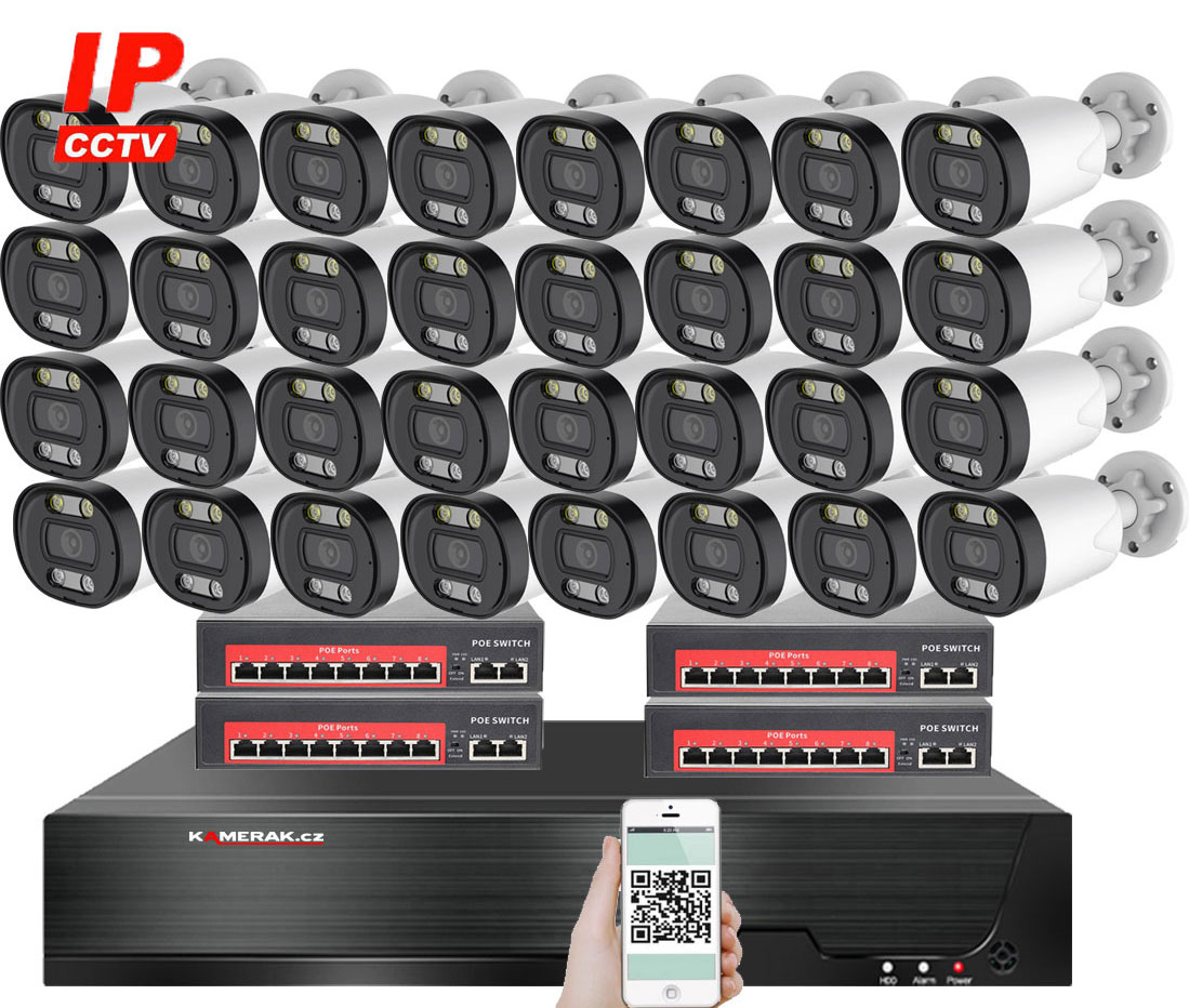 Digitální kamerový set IP XM-3213B-Ext. 4MPx s externím PoE napájením značky KAMERAK.cz nabízí vizuální zabezpečení Vašeho domu, chaty, skladu obchodu a dalších prostor. Velmi jednoduchá instalace , kdy stačí pouze propojit samotné kamery s PoE switch a následně switch s NVR pomocí UTP kabelu a poté podle českého návodu v rekordéru načíst IP adresy kamer. Napájení kamer se provádí z PoE switche, společně s daty, pomocí UTP kabelu. Díky jednoduchému a intuitivnímu zapojení zvládnete instalaci dohledového systému svépomocí. Součástí kamerového setu jsou všechny potřebné komponenty pro zprovoznění (pro záznam je nutný pouze HDD, který není součástí balení). Při nákupu HDD společně s kamerovým setem Vám jej zdarma odborně nainstalujeme. Lze připojit záznamové zařízení pomocí síťového kabelu do Vašeho routeru a tím získáte vzdálený přístup a sledování obrazu kamer na Vašem telefonu (Android, iOS), tabletu nebo PC. Menu NVR je v českém jazyce a součástí balení je i český návod, díky tomu je ovládání kamerového systému velmi jednoduché.