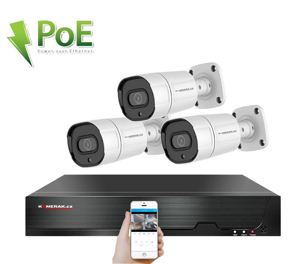 Digitální kamerový set PoE IP XM-308D 8Mpx značky KAMERAK.cz nabízí vizuální zabezpečení Vašeho domu, chaty, skladu obchodu a dalších prostor. Velmi jednoduchá instalace , kdy stačí pouze propojit samotné kamery s NVR pomocí UTP kabelu a následně podle českého návodu v rekordéru načíst IP adresy kamer. Napájení kamer se provádí, společně s daty, pomocí UTP kabelu přímo z NVR, tudíž není třeba řešit problematiku externího napájení. Díky jednoduchému a intuitivnímu zapojení zvládnete instalaci dohledového systému svépomocí. Součástí kamerového setu jsou všechny potřebné komponenty pro zprovoznění (pro záznam je nutný pouze HDD, který není součástí balení). Při nákupu HDD společně s kamerovým setem Vám jej zdarma odborně nainstalujeme. Lze připojit záznamové zařízení pomocí síťového kabelu do Vašeho routeru a tím získáte vzdálený přístup a sledování obrazu kamer na Vašem telefonu (Android, iOS), tabletu nebo PC. Menu NVR je v českém jazyce a součástí balení je i český návod, díky tomu je ovládání kamerového systému velmi jednoduché.