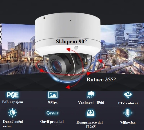 4K PoE IP kamera XM-19D PTZ v provedení DOME 8MPx - Cena: 3690 Kč