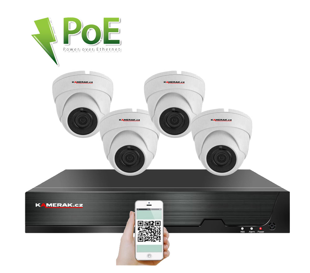 Digitální kamerový set PoE IP XM-402D 8MPx značky KAMERAK.cz nabízí vizuální zabezpečení Vašeho domu, chaty, skladu obchodu a dalších prostor. Velmi jednoduchá instalace , kdy stačí pouze propojit samotné kamery s NVR pomocí UTP kabelu a následně podle českého návodu v rekordéru načíst IP adresy kamer. Napájení kamer se provádí, společně s daty, pomocí UTP kabelu přímo z NVR, tudíž není třeba řešit problematiku externího napájení. Díky jednoduchému a intuitivnímu zapojení zvládnete instalaci dohledového systému svépomocí. Součástí kamerového setu jsou všechny potřebné komponenty pro zprovoznění (pro záznam je nutný pouze HDD, který není součástí balení). Při nákupu HDD společně s kamerovým setem Vám jej zdarma odborně nainstalujeme. Lze připojit záznamové zařízení pomocí síťového kabelu do Vašeho routeru a tím získáte vzdálený přístup a sledování obrazu kamer na Vašem telefonu (Android, iOS), tabletu nebo PC. Menu NVR je v českém jazyce a součástí balení je i český návod, díky tomu je ovládání kamerového systému velmi jednoduché.