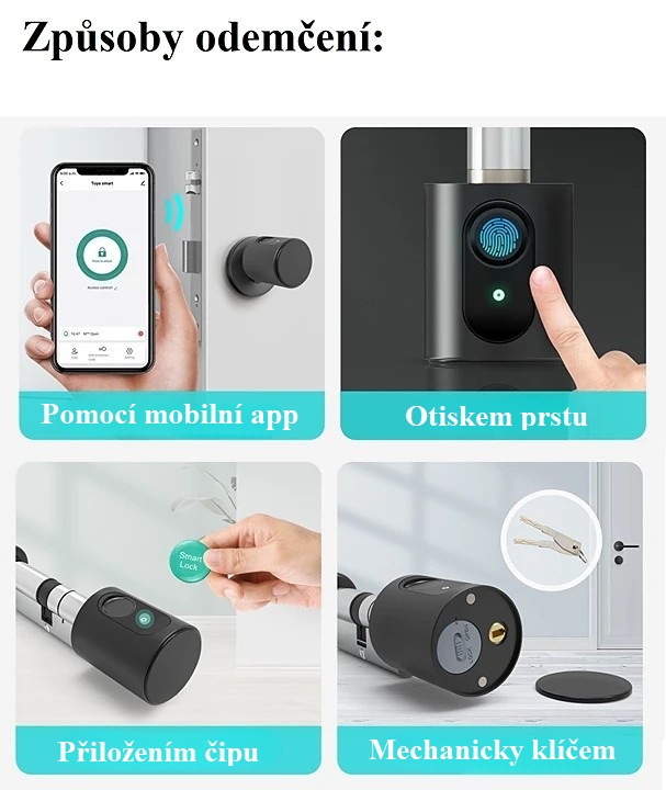 Zapomeňte na hledání klíčů. Tato moderní chytrá vložka umožňuje odemykat dveře otiskem prstu, přiložením čipu nebo přes mobilní aplikaci. Díky Bluetooth ji můžete ovládat telefonem v dosahu, a pokud máte chytrou bránu Tuya, zvládnete dveře odemknout odkudkoli na světě.