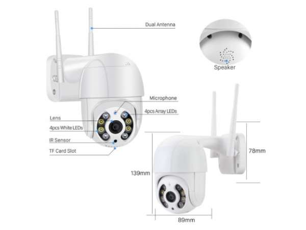 Výkonná kvalitní bezdrátová WiFi IP kamera s otočným motorizovaným objektivem ve venkovním provedení s krytím IP66, silným nočním infračerveným viděním, je vhodná pro firemní i domácí použití, pokud požadujete velice detailní a ostrý obraz s možností otáčení objektivu. Nabízí vysoké rozlišení FullHD 1080P (1920x1080 pixel), moderní kompresi videa kodekem H.265, konektivitu do bezdrátové sítě WLAN pomocí Wi-Fi a do sítě LAN pomocí konektoru RJ-45, nízkou spotřebu a vysokou spolehlivost i za nepříznivých podmínek. Tato kamera má integrovaný slot na standardní paměťové karty MicroSD (max 128GB) a podporuje autonomní nahrávání ve smyčce, bez nutnosti dalších záznamových zařízení. Kameru lze vzdáleně ovládat a otáčet objektivem.