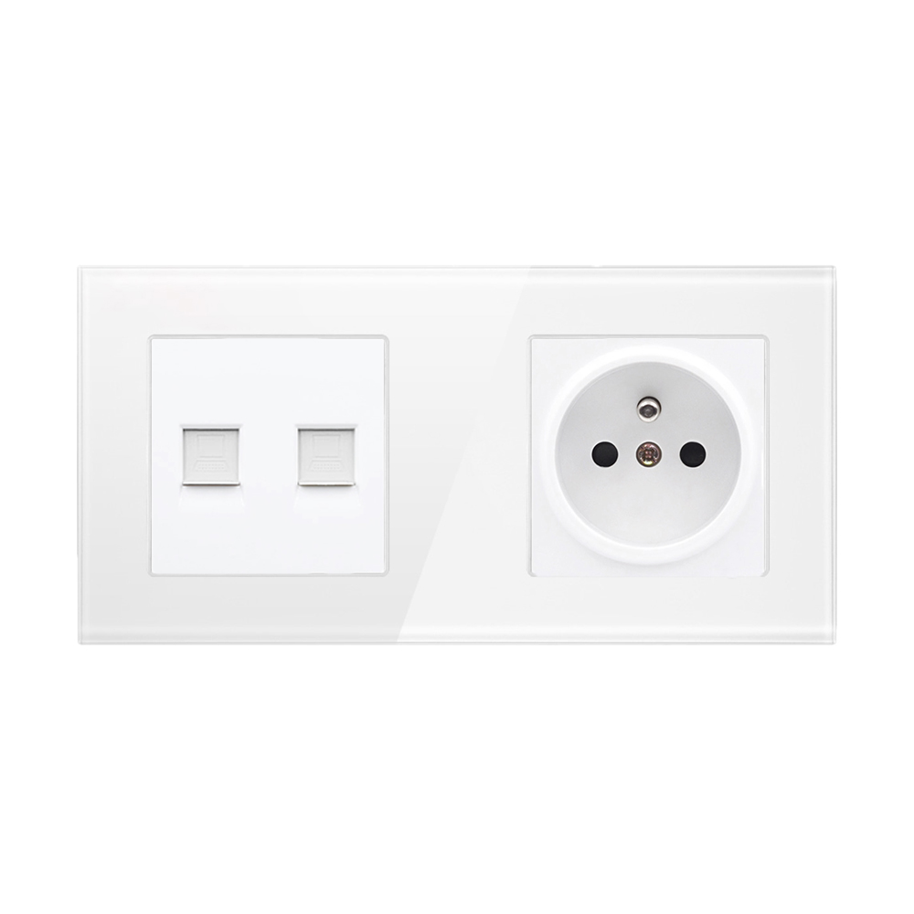 SRAN Elektrická zásuvka 230V+2xRJ45 zásuvka 2xRJ45 v širokém rámečku 172mm, sklo bílý - Cena: 136 Kč