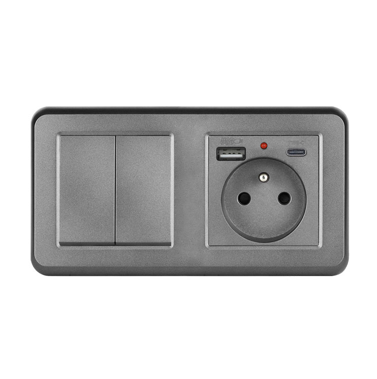 UNIC Elektrická zásuvka (230V+USB+USBc 5V) + dvojvypínač lustrový sériový č.5 v rámečku 153mm, plast šedý - Cena: 309 Kč