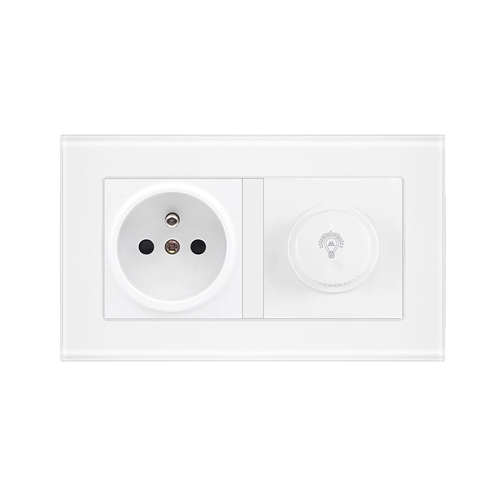 SRAN Elektrická zásuvka 230V + LED otočný stmívač 230V/1A v rámečku 147mm, sklo bílý - Cena: 150 Kč