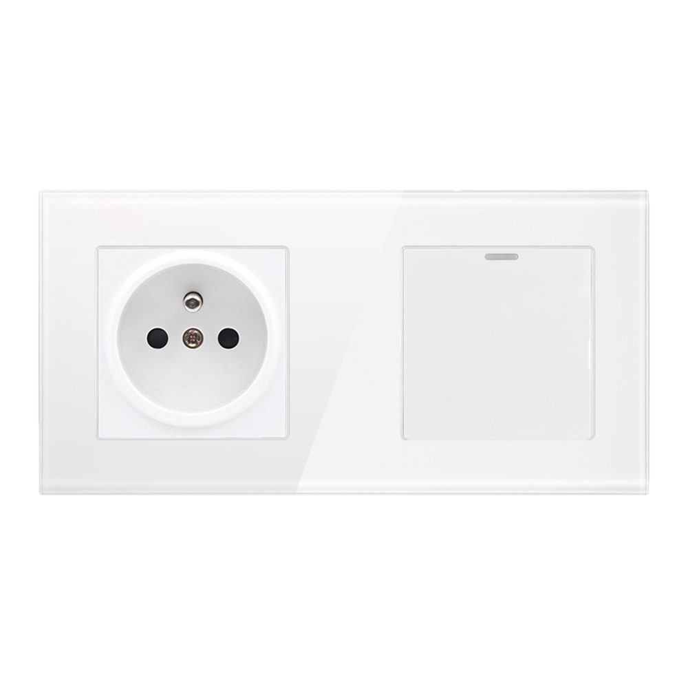 SRAN Elektrická zásuvka 230V 5V/2,1A + vypínač schodišťový/křížový v rámečku 172mm, sklo bílý široký - Cena: 145 Kč