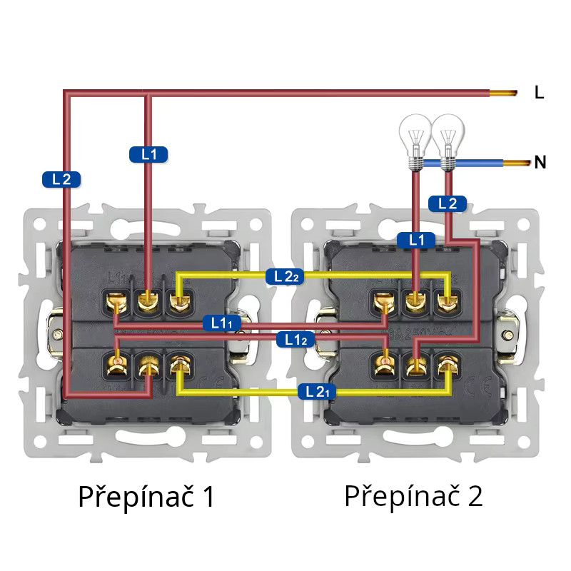 UNIC Dvojvypínač střídavý-schodišťový č.5B 6+6 v rámečku 82mm, slitina hliníku šedý - Cena: 157 Kč