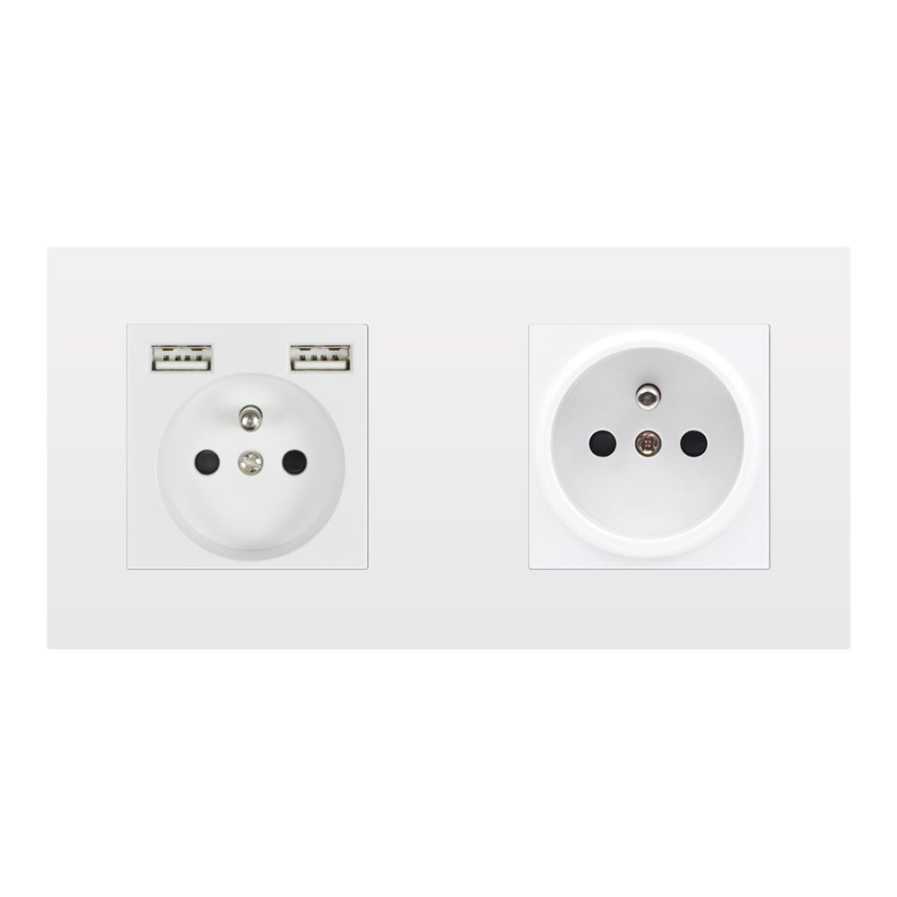 SRAN Elektrická zásuvka 2x230V+2xUSB 5V/2.1A plast bílá včetně rámečku - Cena: 278 Kč