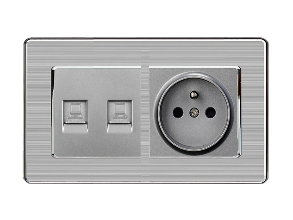 SRAN Elektrická zásuvka 230V+modul 2xRJ45 v rámečku nerez ocel - Cena: 136 Kč