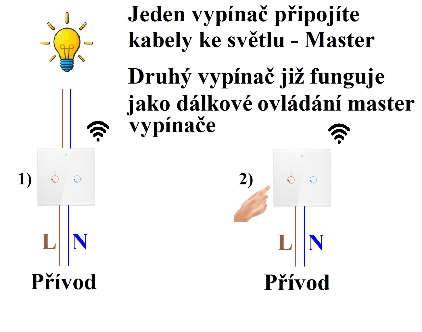 Vypínače lze v aplikaci spárovat mezi sebou a vytvořit tak "schodišťový" vypínač bez nutnosti propojování jednotlivých vypínačů mezi sebou. Možností pro vytvoření scény je mnoho a můžete tak nastavit klidně rozsvícení světel při detekci pohybu detektorem pohybu.