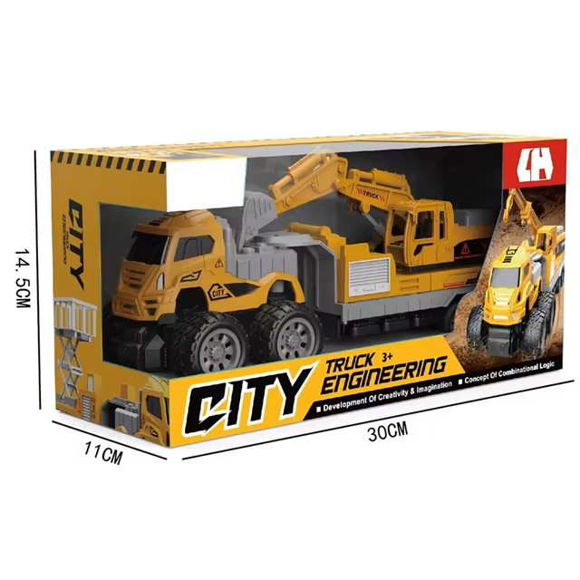 Tato skvělá stavební souprava CITY Truck Engineering představuje detailní model rypadla/bagru přepravovaného na robustním tahači s masivními koly, který je připraven na každé staveniště.