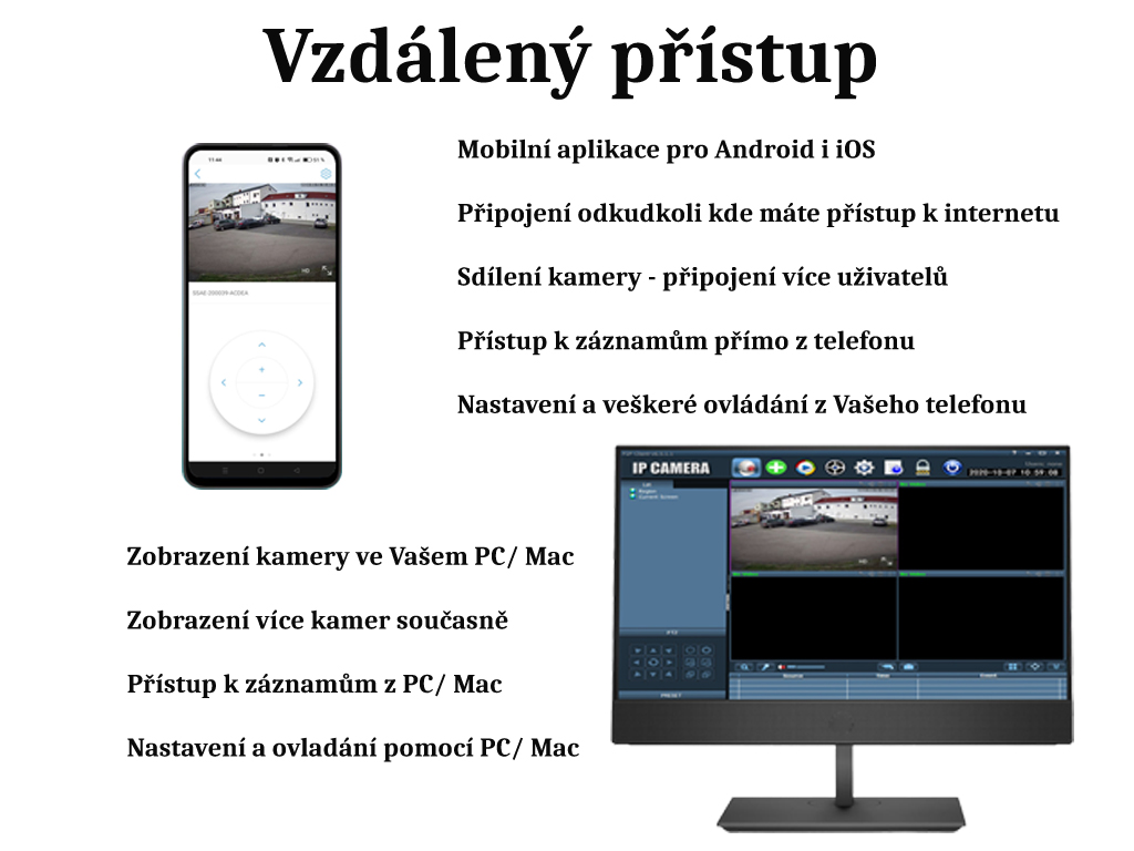 WiFi IP P2P kamera umožňuje sledovat dění v přímém přenosu pomocí mobilního telefonu nebo PC, při vložení paměťové karty přímo do kamery získáte možnost ukládat záznamy, ke kterým máte kdykoliv přístup.