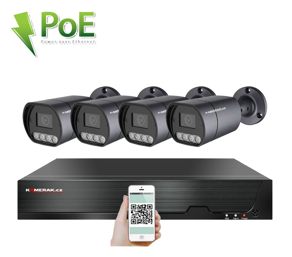 PoE IP 4 kamerový set XM-410B 4MPx, mikrofon, CZ menu - Cena: 6990 Kč