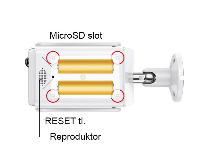 S podporou solárního dobíjení dvě nabíjecí baterie Li-ion typu 18650 dokáží kameru napájet po dobu až 3 měsíce (při 15 detekcích pohybu denně s 15s záznamem videa při každé detekci), poté stačí dobít baterie v nabíječce baterií ( není součástí prodeje). V případě vybití baterií lze nabít i adaptérem 5V min.1A. (pozor, nelze použít více, než 5V adaptér, aby nedošlo k poškození kamery)