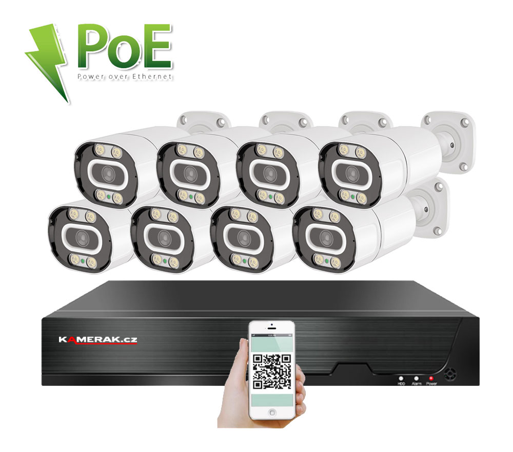 Digitální kamerový set PoE IP XM-803B 4MPx značky KAMERAK.cz nabízí vizuální zabezpečení Vašeho domu, chaty, skladu obchodu a dalších prostor. Velmi jednoduchá instalace , kdy stačí pouze propojit samotné kamery s NVR pomocí UTP kabelu a následně podle českého návodu v rekordéru načíst IP adresy kamer. Napájení kamer se provádí, společně s daty, pomocí UTP kabelu přímo z NVR, tudíž není třeba řešit problematiku externího napájení. Díky jednoduchému a intuitivnímu zapojení zvládnete instalaci dohledového systému svépomocí. Součástí kamerového setu jsou všechny potřebné komponenty pro zprovoznění (pro záznam je nutný pouze HDD, který není součástí balení). Při nákupu HDD společně s kamerovým setem Vám jej zdarma odborně nainstalujeme. Lze připojit záznamové zařízení pomocí síťového kabelu do Vašeho routeru a tím získáte vzdálený přístup a sledování obrazu kamer na Vašem telefonu (Android, iOS), tabletu nebo PC. Menu NVR je v českém jazyce a součástí balení je i český návod, díky tomu je ovládání kamerového systému velmi jednoduché.