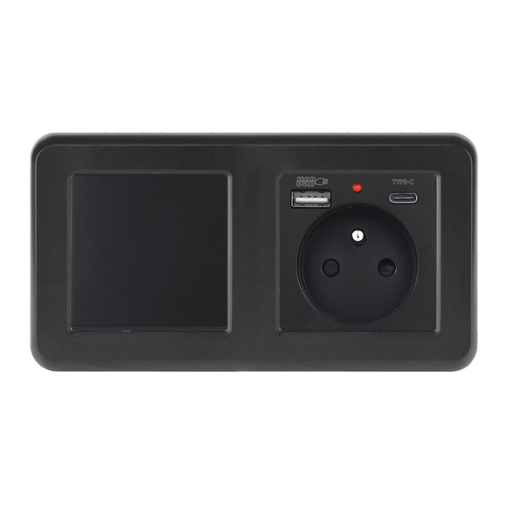 UNIC Elektrická zásuvka (230V+USB+USBc 5V) + vypínač jednopólový č.1 v rámečku 153mm, plast černý - Cena: 347 Kč